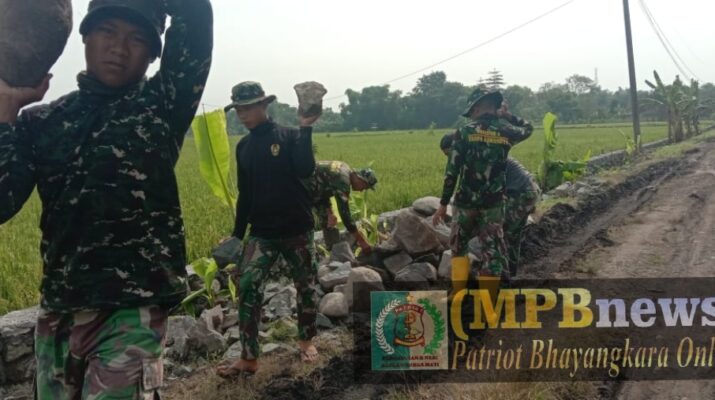 (MPBnews) Patriot Bhayangkara | SUKOHARJO – Anggota Satga TMMD ke 120 Kodim 0726/Sukoharjo Mulai finishing sasaran fidik Talud yang ada di dukuh Pabrik